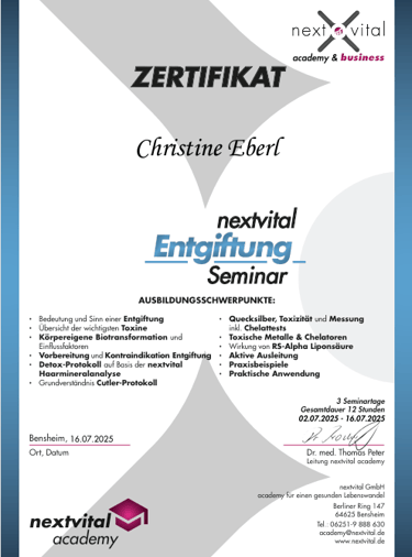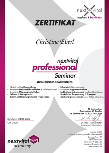 Ausbildung durch nextvital Dr. Peter Thomas